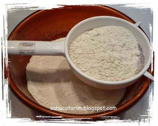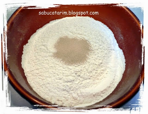 Cerneţi făina într-un castron, adăugaţi drojdia şi amestecaţi-le bine.